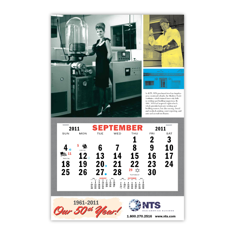 For NTS’s 50th anniversary, I was asked to develop a vintage-looking calendar. This was the most fun I’ve ever had designing a calendar!